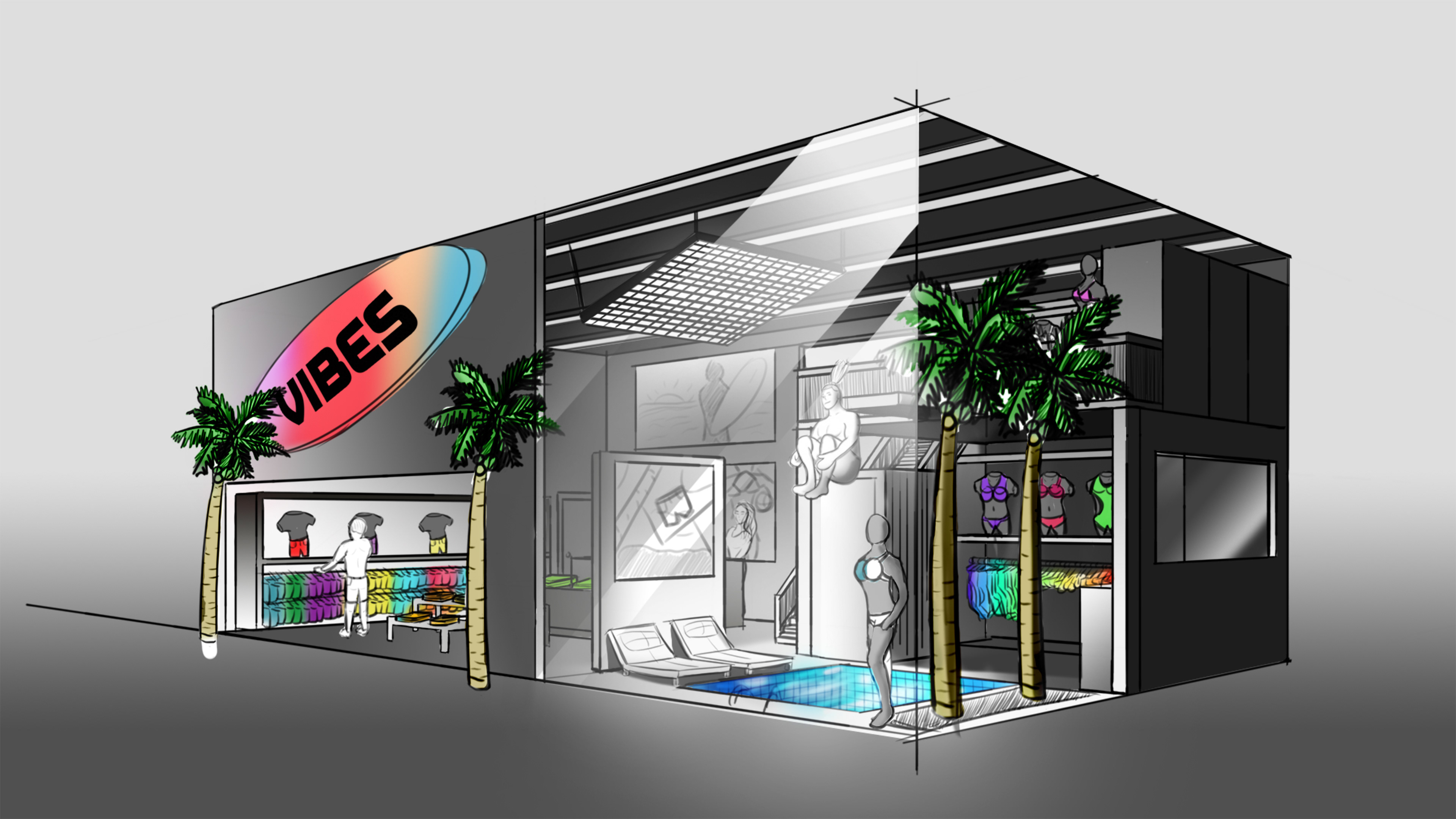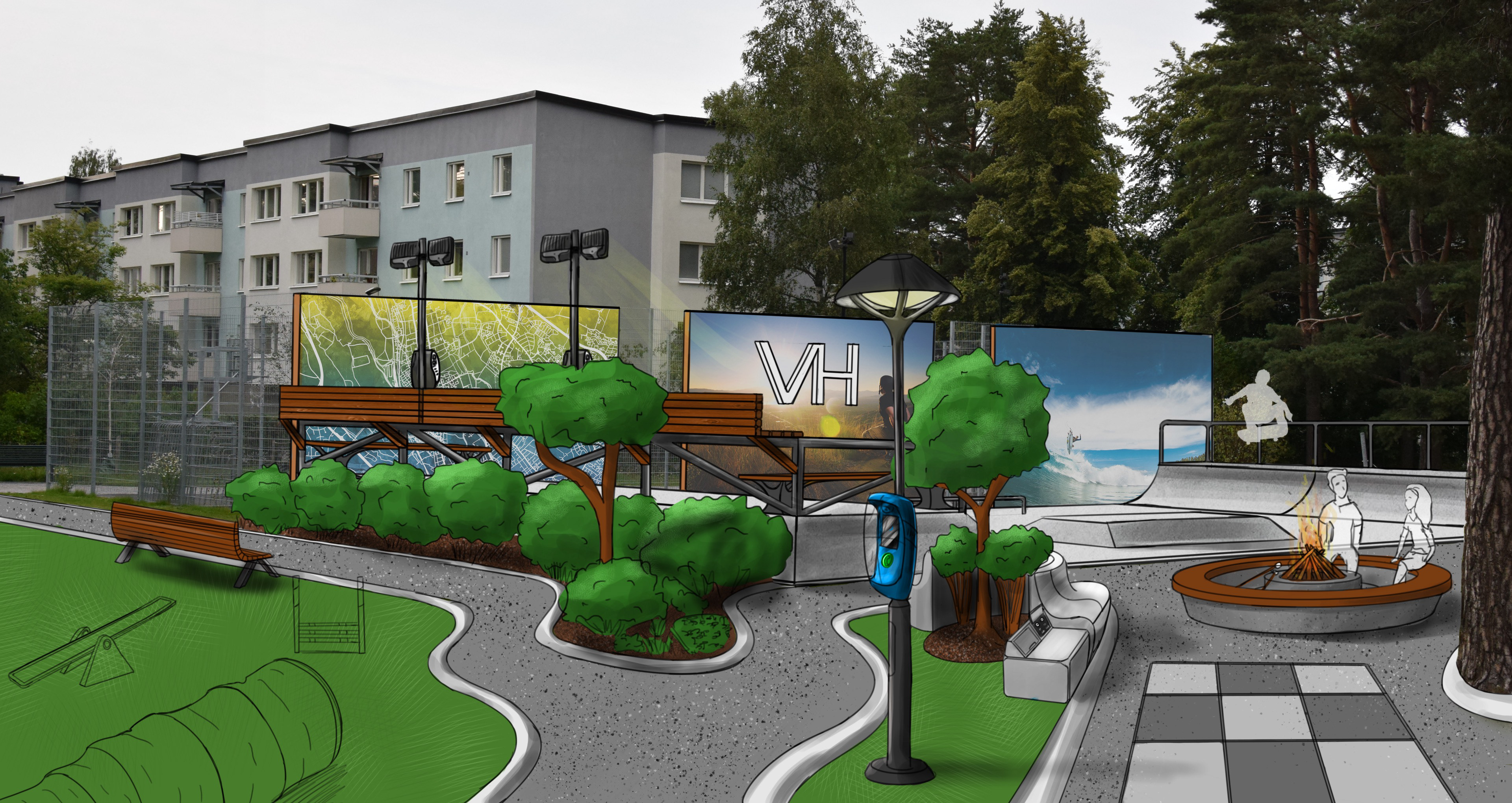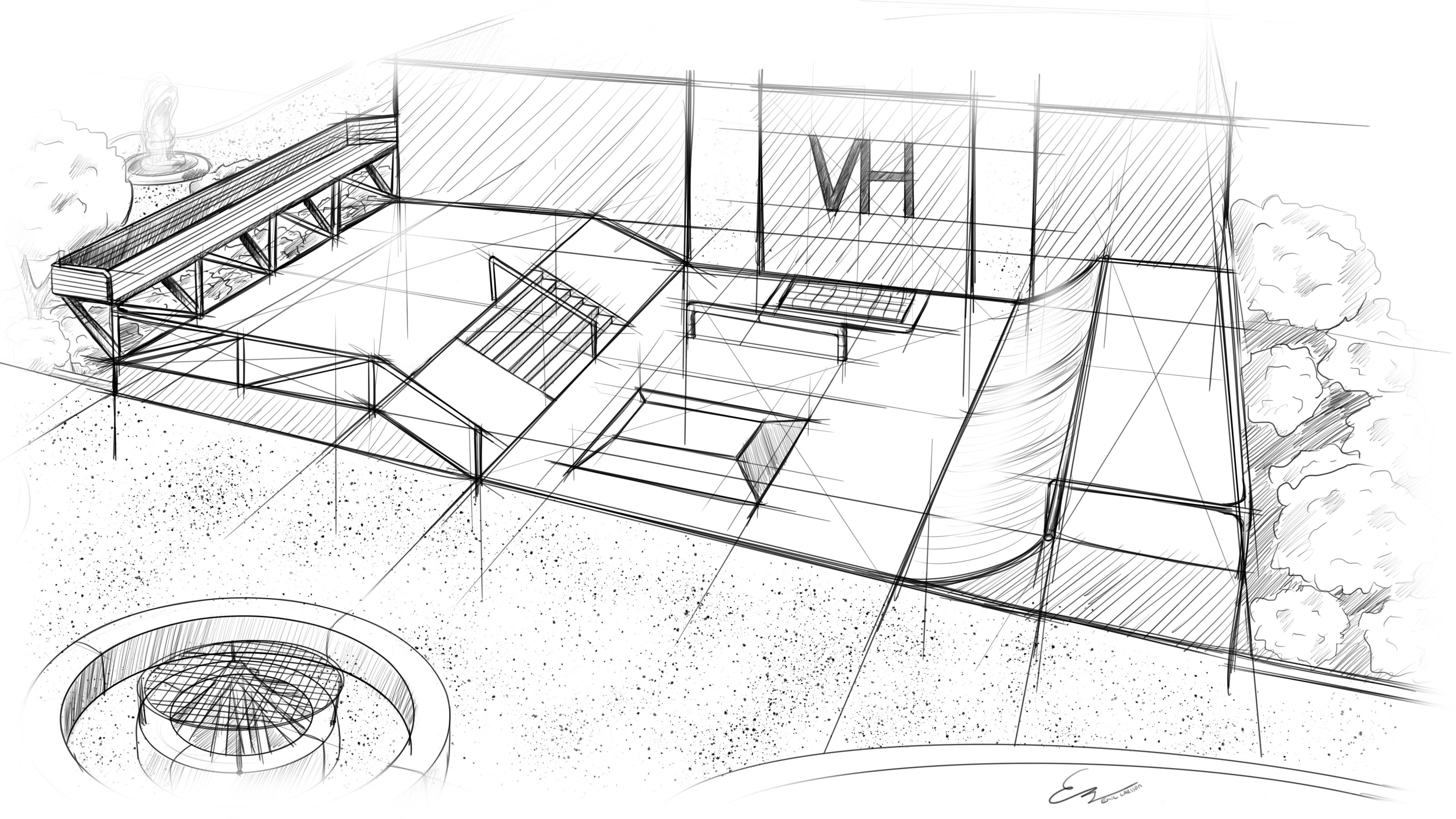 Concept sketches of a proposal for a skate park in Västerhaninge, south of Stockholm.